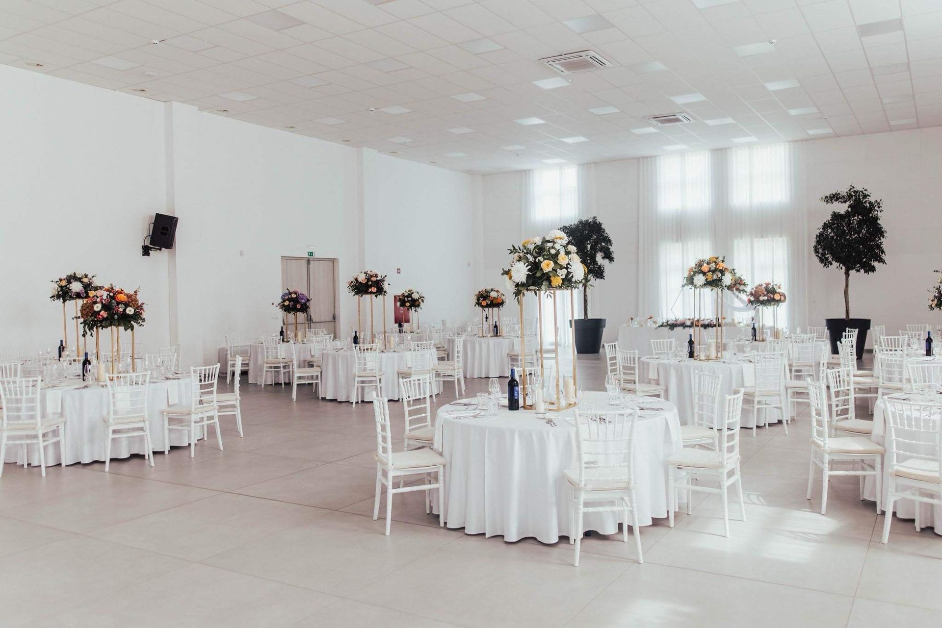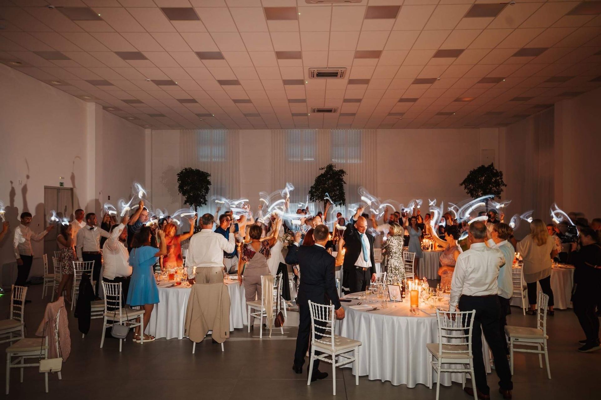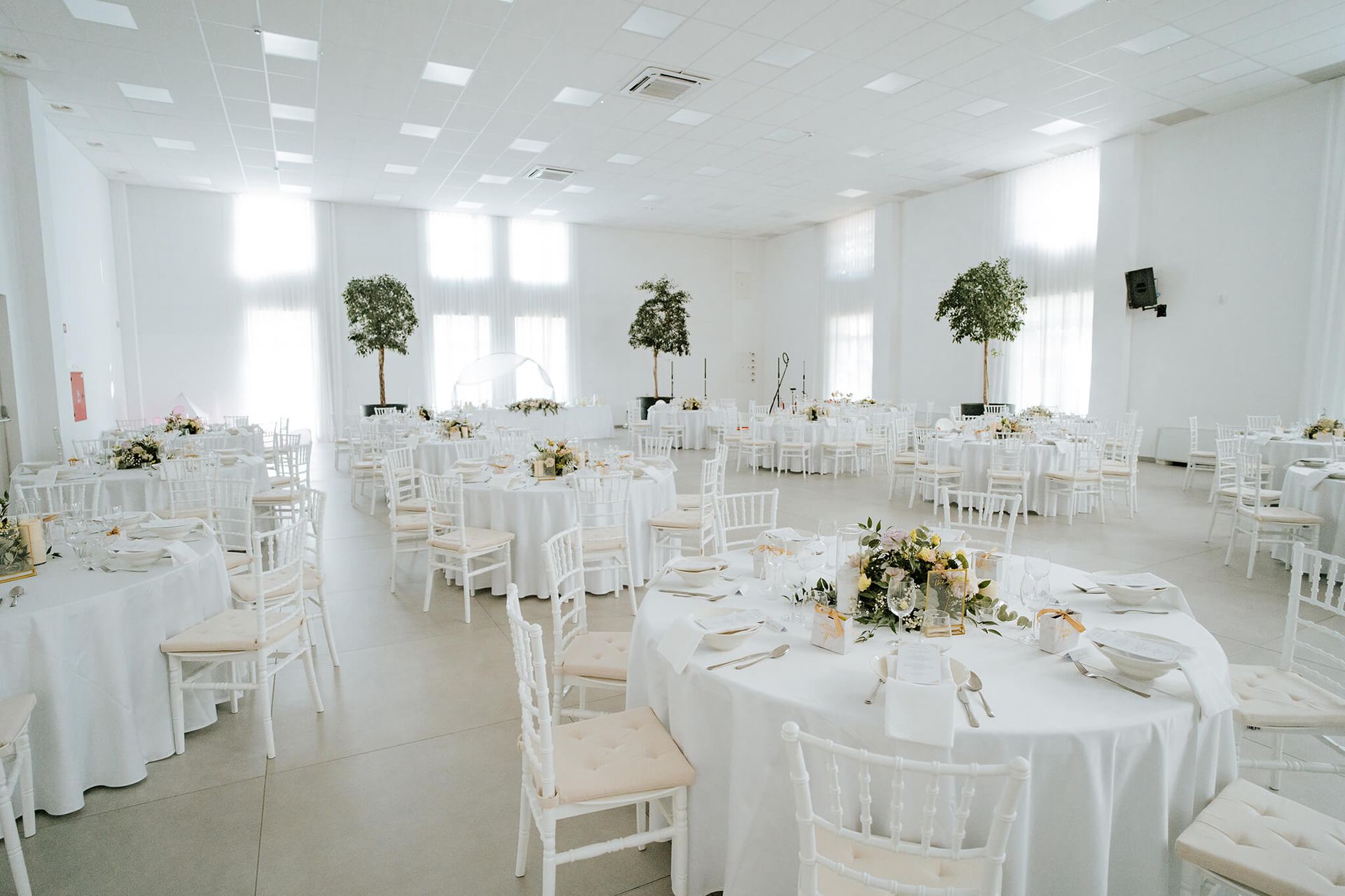 Dvorana razpolaga z 200 belimi banketnimi stoli in 26 okroglimi mizami z elegantnimi belimi prti, kar vam omogoča organizacijo porok, zabav, rojstnih dnevov in raznih družbenih dogodkov. Civilni obred lahko poteka na čudoviti jasi pred dvorano ob bregu reke Krke, s postavitvijo 60 prozornih stolov, mizo za obred in z lokom, ki se ga lahko okrasi s cvetjem.
