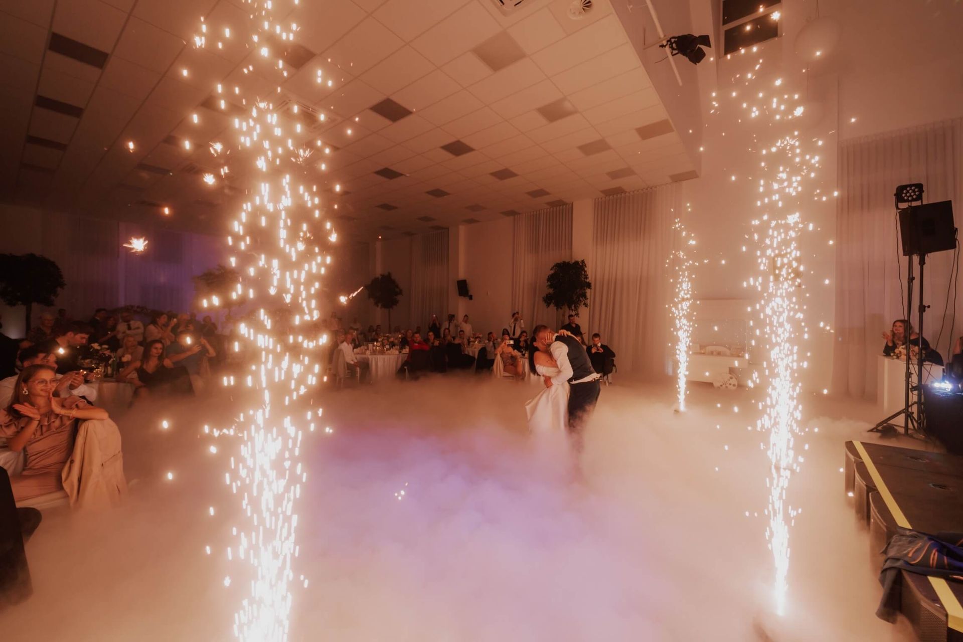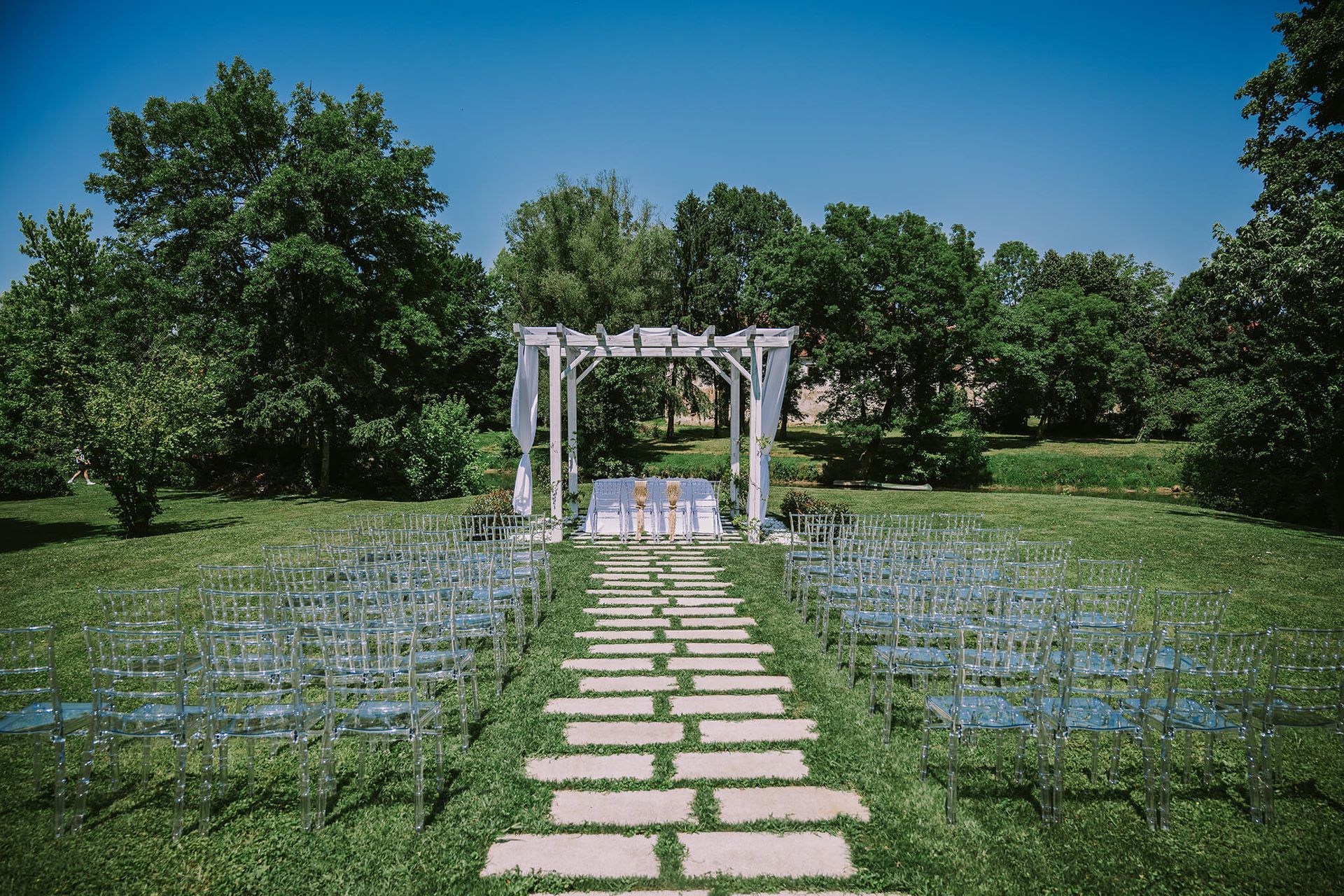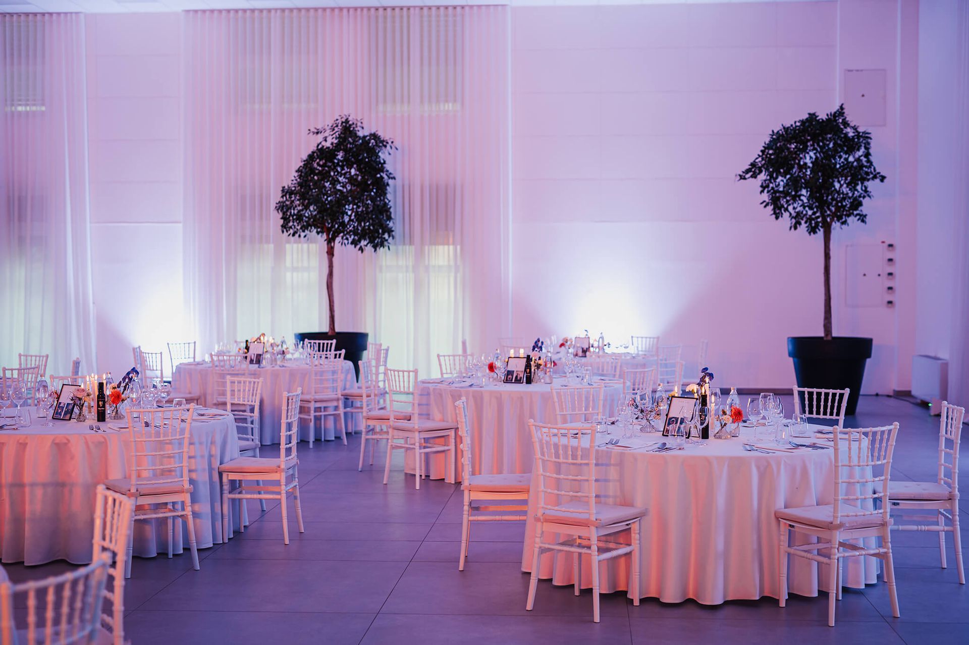 Dvorana razpolaga z 200 belimi banketnimi stoli in 26 okroglimi mizami z elegantnimi belimi prti, kar vam omogoča organizacijo porok, zabav, rojstnih dnevov in raznih družbenih dogodkov. Civilni obred lahko poteka na čudoviti jasi pred dvorano ob bregu reke Krke, s postavitvijo 60 prozornih stolov, mizo za obred in z lokom, ki se ga lahko okrasi s cvetjem.